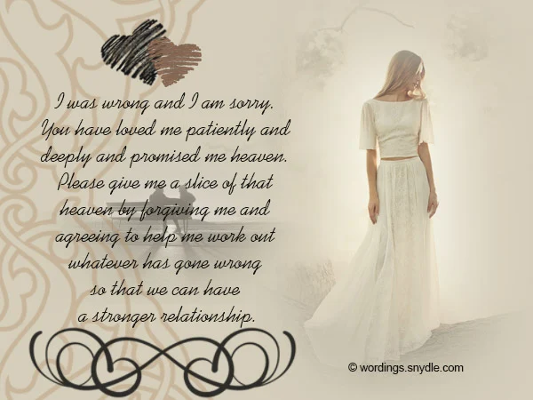 Ever since we started dating you have done everything I asked you to. As one last favor, please forgive me so that I can start doing everything that you want me to. I am sorry.