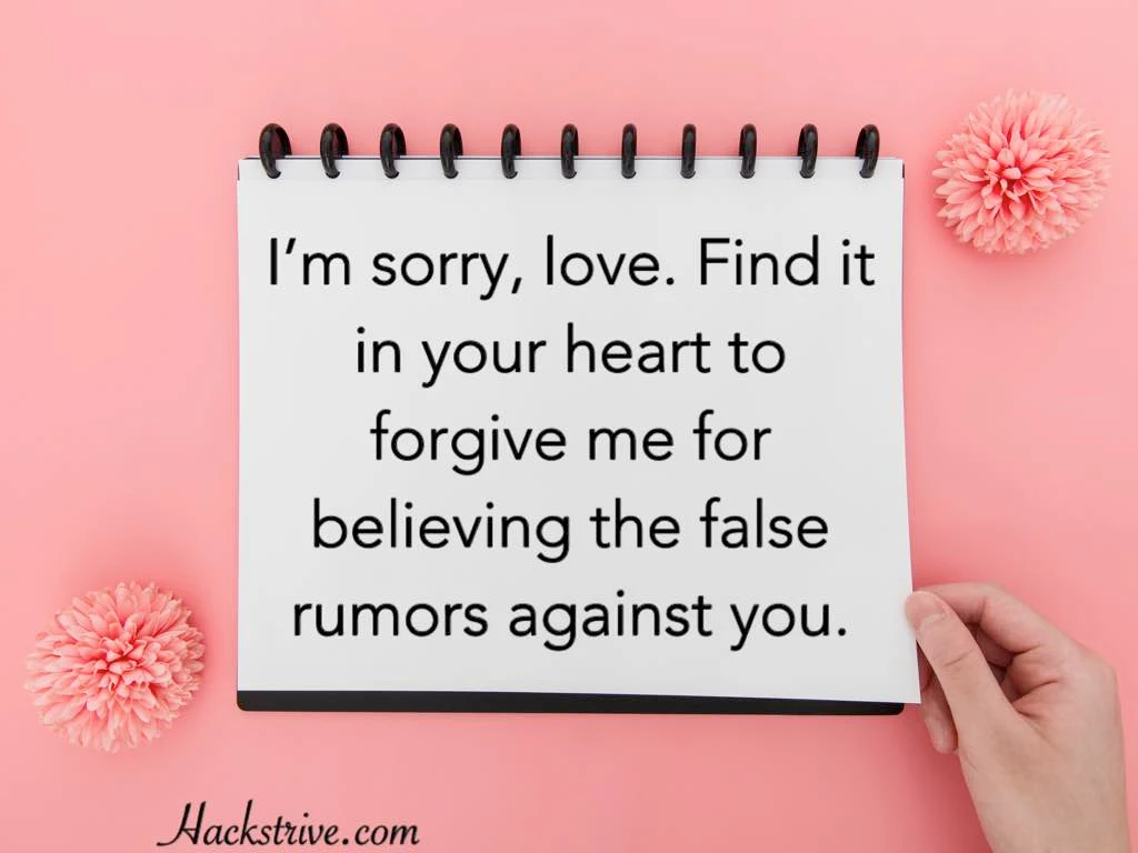 Don’t forgive me just because I’m saying sorry. Forgive me because I love you and don’t want to waste a single moment of our time together fighting. Truly yours, now and forever.